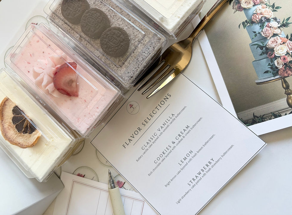 Cake tastings and sampler boxes are offered every other month to allow time for thoughtful preparation, baking, and design—while also balancing the rhythm of business and everyday life. Each release is carefully curated so that every detail feels intentional and elevated.