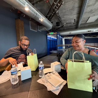 Engaged couple (Reggie and Dana) at cake consultation/cake tasting.